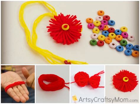 How To Make Rakhi Cards At Home - Rakhi Greetings. Free Happy Raksha Bandhan eCards ... / Tie a wooden bead at the center & another strand behind to make the rakhi.